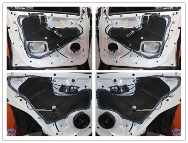 車門內(nèi)層使用美特靜減震板加固鈑金,有效減少共振噪音。