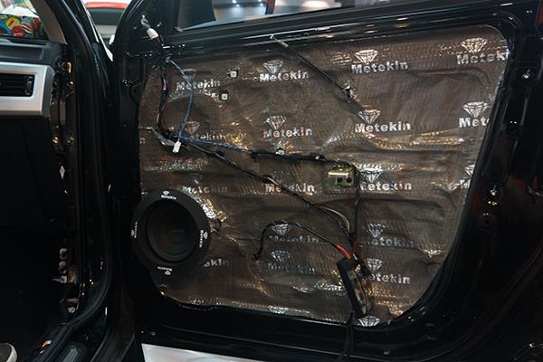 為了給汽車音響喇叭打造一個(gè)良好的工作環(huán)境,改裝技師采用美特靜隔音材料對(duì)車門做了雙層的隔音處理,這就像是在門板的周圍制作了一個(gè)箱體一般,一方面能夠減少噪聲對(duì)其的干擾,另外一方面還能夠有效的增加音樂的立體感。
