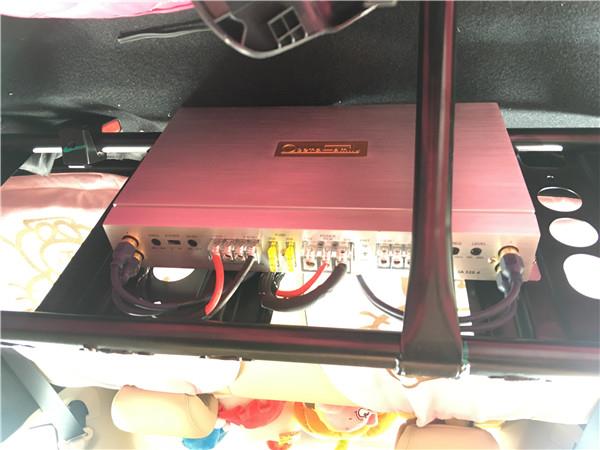 完整的音響系統(tǒng)少不了功放的推動和超低音對氣氛的渲染,改裝技師對施工工藝要求非常嚴(yán)格,哪怕是隱藏安裝的歌劇世家IA320.4功放都對線材進(jìn)行了認(rèn)真的連接和處理。