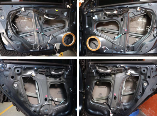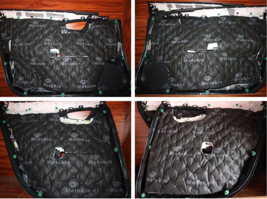 將原車的劣質(zhì)隔音材料清理干凈之后,把裁剪好的隔音材料對門板進行了雙層隔音處理,這不僅有效抑制的了風(fēng)噪的傳入,同時還為汽車的聲場喇叭創(chuàng)造了一個良好的工作環(huán)境,使得音響系統(tǒng)的音質(zhì)更加出色。
