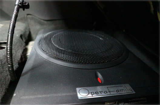 原車音響系統(tǒng)并沒有超低音單元,使得音樂的低頻部分表現(xiàn)不足,因此加入一臺歌劇世家U3超薄有源低音炮,它可以增加低音部分的下潛力度,讓音樂張力更強,提高車廂的聽歌氛圍。