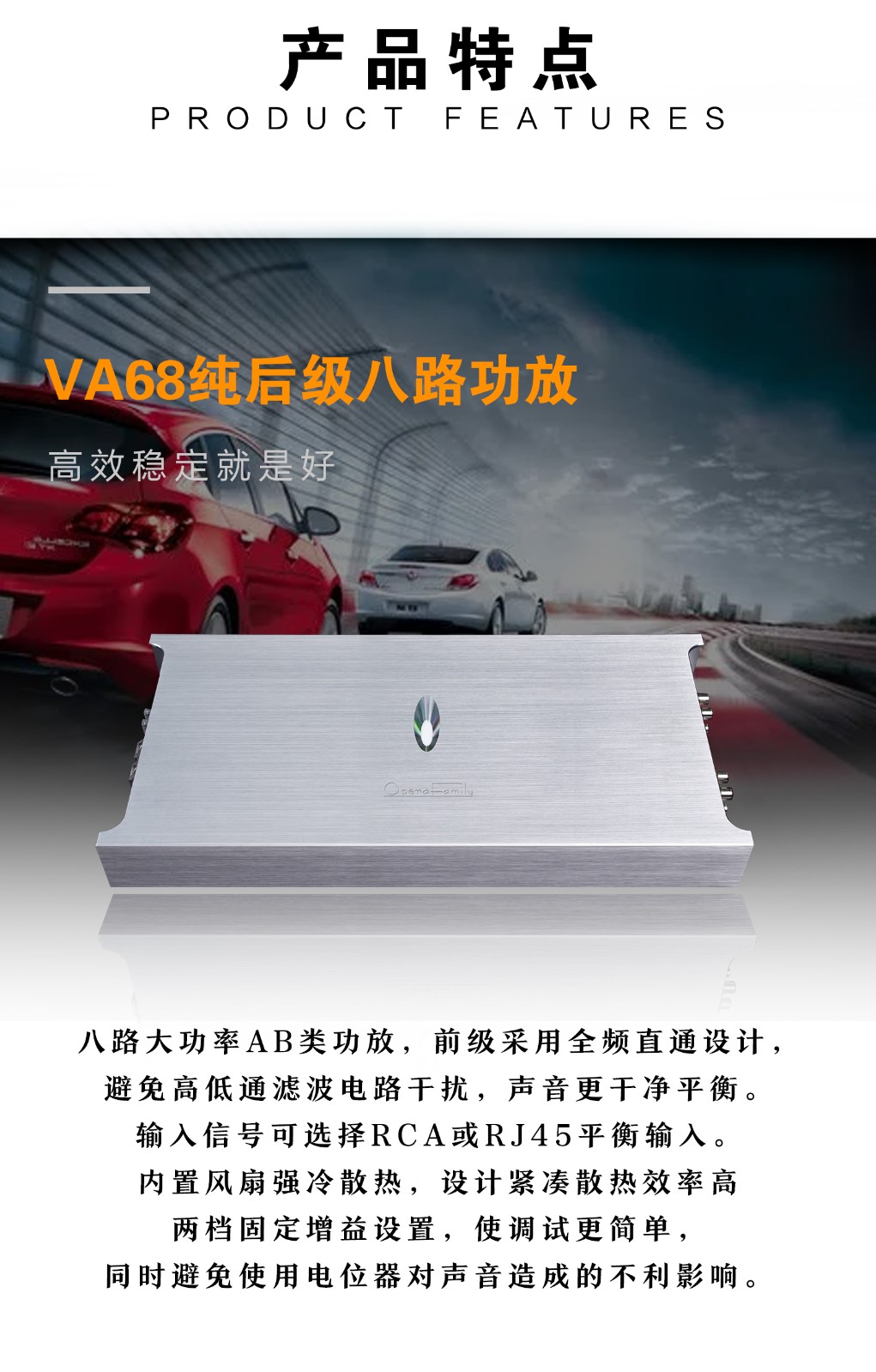 歌劇世家VA 68是一款八路功率放大器,功率為80W*8(4Ω),尺寸規(guī)格為40.1x20x4.6.