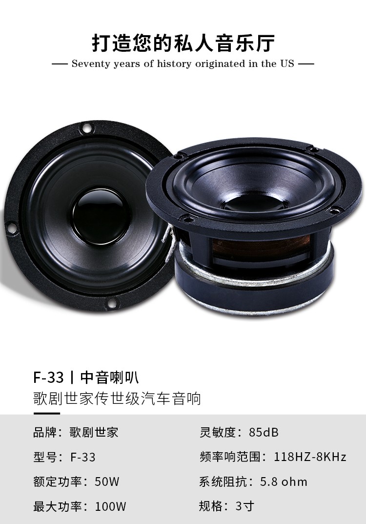 3寸中音,115-8KHz,50W