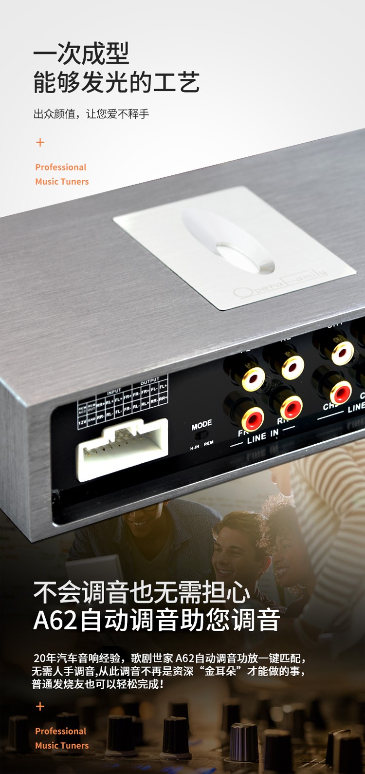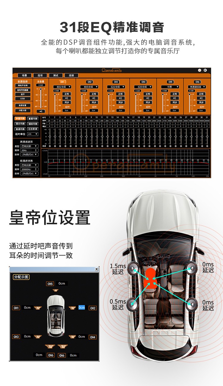 品牌: Opera family/歌劇世家意圖系列 型號: A62 聲道: 6 失真度: 0.01% 信噪比: 95dBA 額定功率: 其他 汽車音響功放類別: A/B類 汽車音響功放用途: 推低音 4進6出,31段EQ,延時、藍牙、4x60W、U盤、自動調(diào)音
