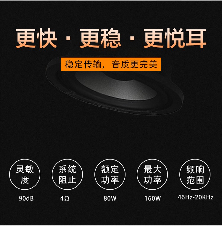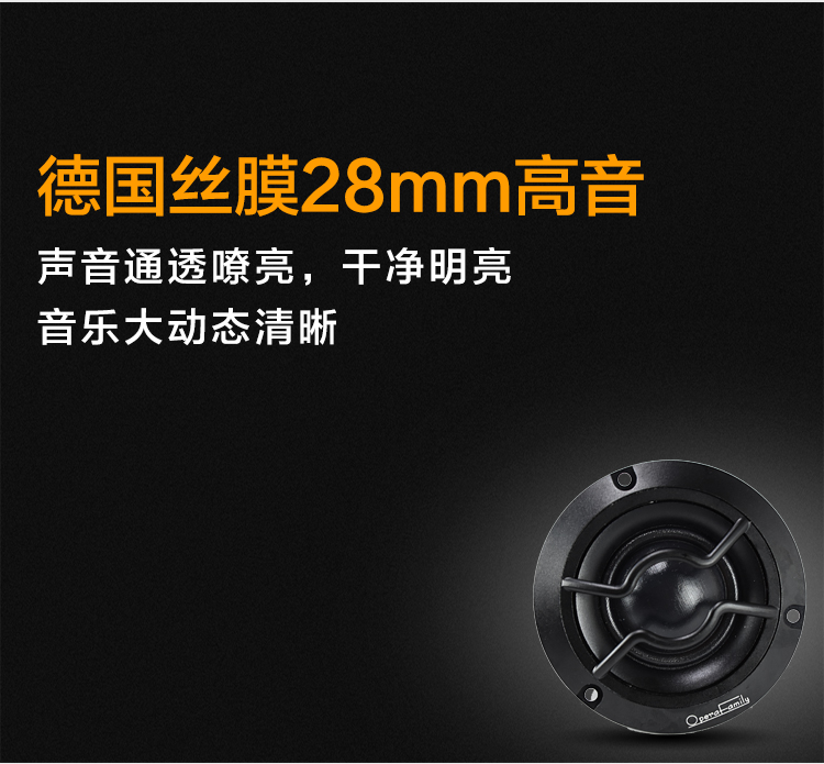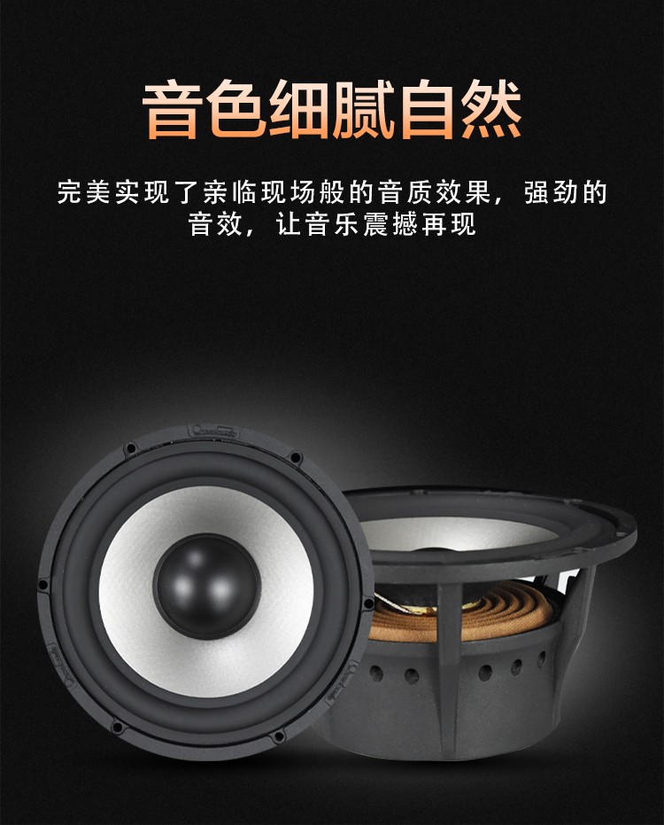德國絲膜28mm高音,3.5寸蜂窩中音,6.5寸蜂窩中低音,一體式壓鑄鋁支架,100W。 額定功率:80W 最大功率:160W 系統(tǒng)阻抗:4歐姆 靈敏度:90dB 頻響范圍:46Hz-20kHz