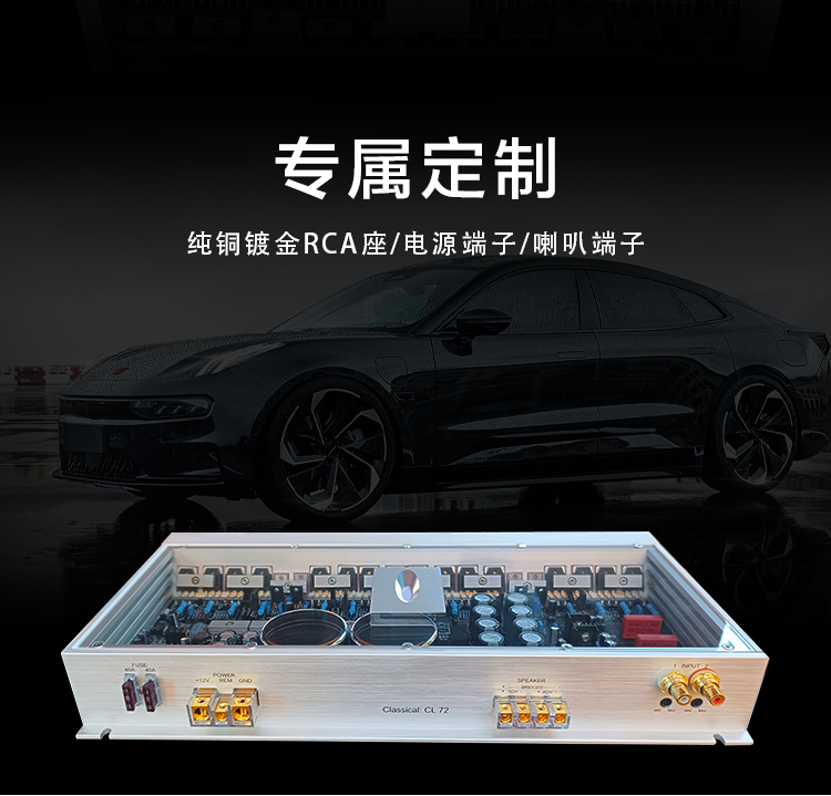 兩組獨(dú)立電源;定制純銅鍍金RCA座、電源端子、喇叭端子;德國(guó)威瑪發(fā)燒級(jí)電容;LED透視式外觀設(shè)計(jì);開關(guān)式輸入增益調(diào)節(jié);外置高效風(fēng)冷散熱系統(tǒng)。 輸入功率:2x250W@4歐姆/1x600W@4歐姆 THD+N:<0.01% 信噪比:>100dB 頻響范圍:10Hz-30kHz±1dB 輸入靈敏度:0.5V-5V 輸入阻抗:47KΩ 待機(jī)電流:<1.2A