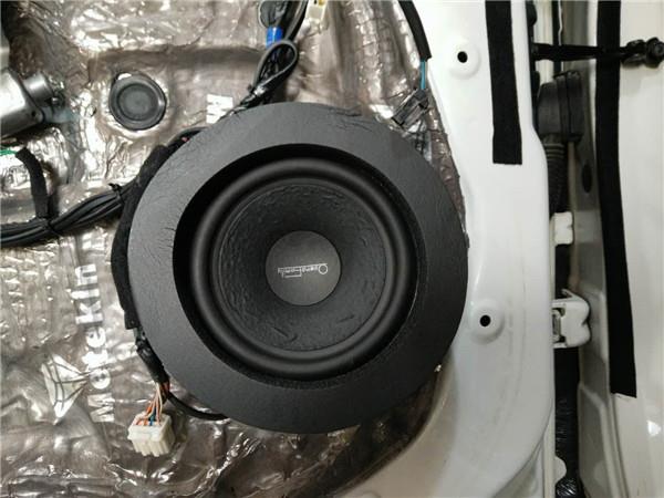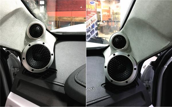 前聲場安裝歌劇世家VS365三分頻,低頻密度感好,中頻清晰,高頻響亮,整個前聲場取得了的非常好的平衡,真實耐聽,且中音和高音倒模安裝于A柱,使得聲場擴大,遼闊又嘹亮。