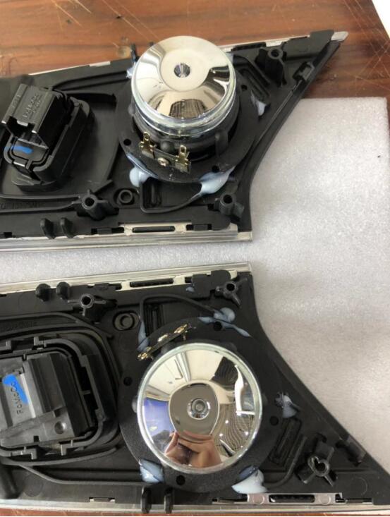 車主在試聽(tīng)歌劇世家F77全頻喇叭后,即敲定了前聲場(chǎng)的安裝。其前聲場(chǎng)歌劇世家F77兩分頻的安裝,卻有著三分頻的效果,高與中低音喇叭既解決了兩分頻中音不足的缺陷,又減少了三分頻的安裝與調(diào)試的難度,其具有良好的聲音平衡度,又能讓音樂(lè)重播有著更好的表現(xiàn)。