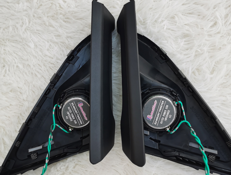 邁博特寶馬三分頻套裝高音單元安裝在三角位,中音和中低音喇叭都是原位換裝。