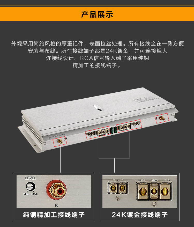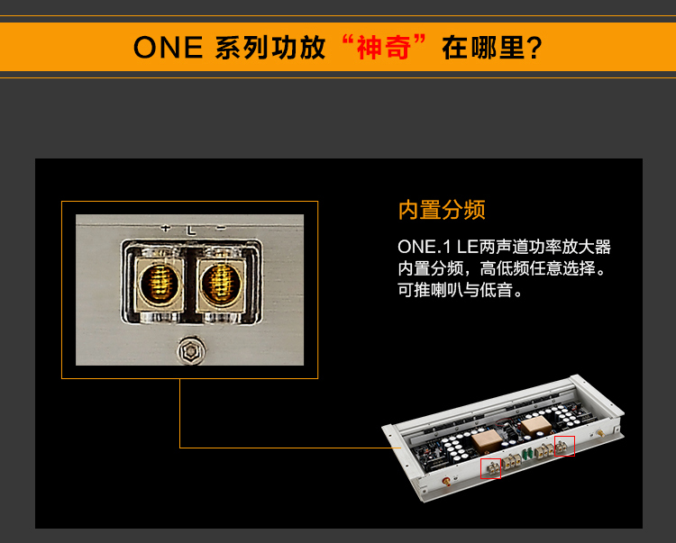 汽車音響功放ONE旗艦級產(chǎn)品摒棄復(fù)雜的對音色有著嚴(yán)重影響的前級電路,功率輸出而達(dá)到HI-end級效果。ONE系列功率放大器以兩個獨(dú)立單聲道功放的設(shè)計方式,聲音表現(xiàn)分離度好。
