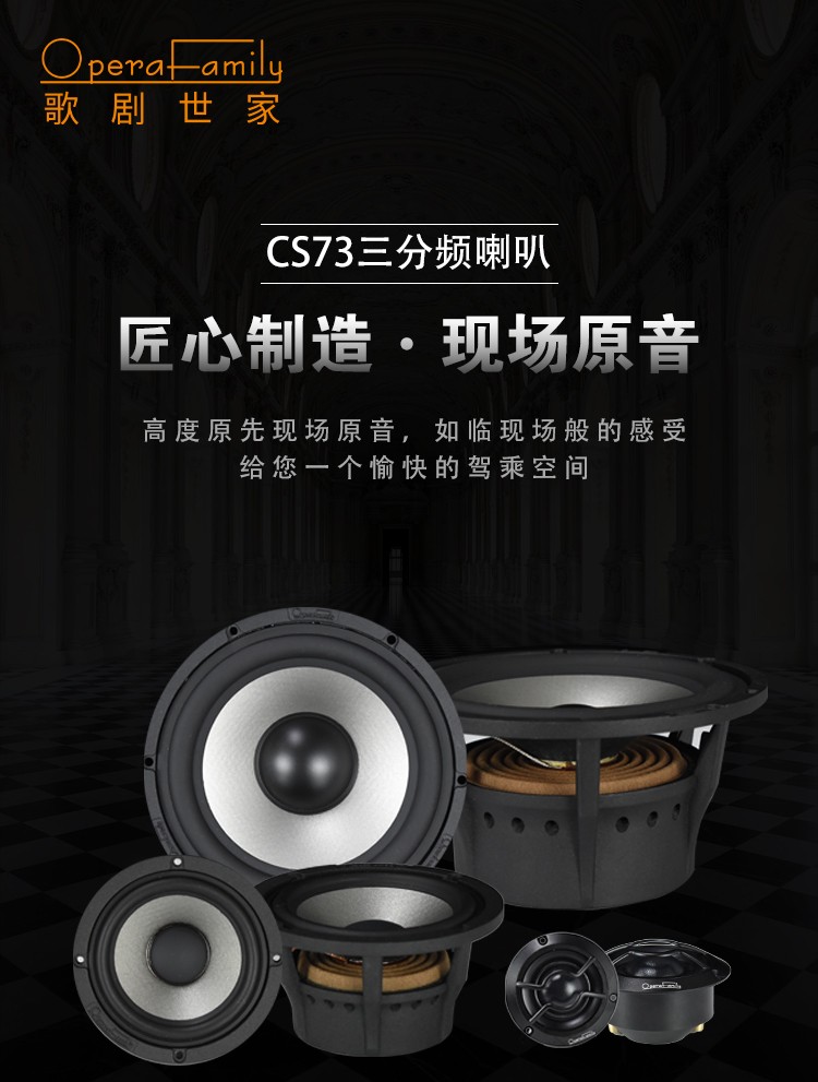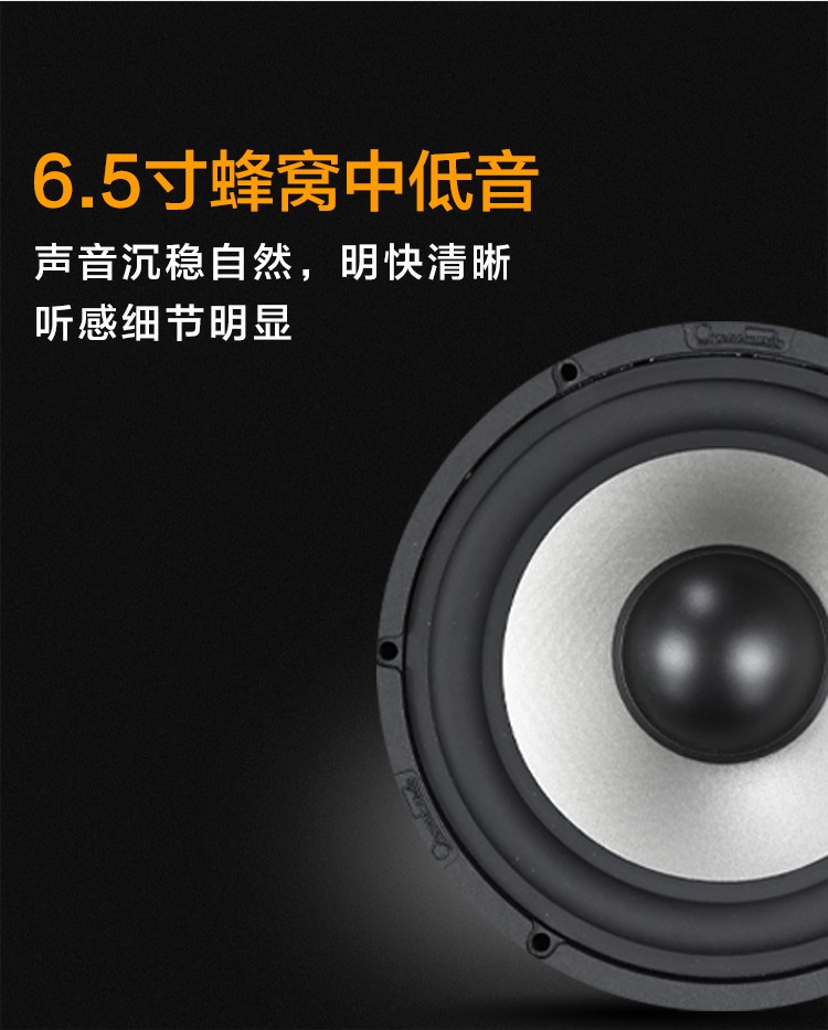 德國絲膜28mm高音,3.5寸蜂窩中音,6.5寸蜂窩中低音,一體式壓鑄鋁支架,100W。 額定功率:80W 最大功率:160W 系統(tǒng)阻抗:4歐姆 靈敏度:90dB 頻響范圍:46Hz-20kHz